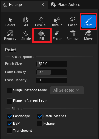 ๋ค์์ ํด๋ฆฌ์ง ๋ชจ๋์ Fill ๋ฐฉ์์ ๋๋ค. Fill ๋ฐฉ์์ Paint ๋ฐฉ์์ฒ๋ผ ๊ตฌ์ญ์ด ๋ณด์ด๋ ๊ฒ์ด ์๋, ๋ง์ฐ์ค ํด๋ฆญ์ ํตํด ํด๋ฆญํ ์ค๋ธ์ ํธ ์ฃผ๋ณ ๋ชจ๋ ๊ณณ์ ์๋ฌผ๋ค์ ๋ฐฐ์นํ ์ ์๊ฒ ํฉ๋๋ค. ์ธ๋ถ ์ค์ ์ Paint ๋ฐฉ์๊ณผ ์ ์ฌํฉ๋๋ค.