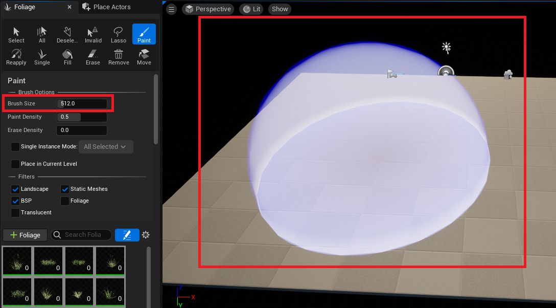 Paint ๋ฐฉ์์ ๋จผ์ ์ ํํด ๋ณด๊ฒ ์ต๋๋ค. Brush Size๋ฅผ ์กฐ์ ํ์ฌ ์๋ฌผ๋ค์ ๋ฐฐ์น๊ตฌ๊ฐ์ ์กฐ์ ํ ์ ์์ต๋๋ค.