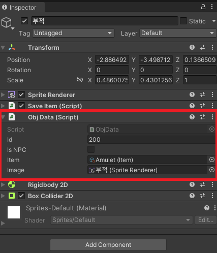 3. ์ค๋ธ์ ํธ ๊ด๋ฆฌ ๋ด๋น ์ญํ (NPC์ธ์ง ์ฌ๋ฌผ์ธ์ง ํ๋จ) -> ObjData.cs