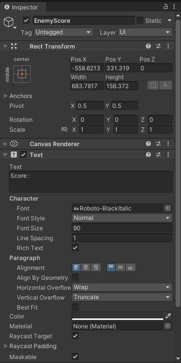 ์์์ 2๊ฐ์ ์ฌ์ง์ ํ๋ ์ด์ด ํ์ฌ Score๋ฅผ ๊ฒ์ UI์ ๋ณด์ฌ์ฃผ๊ณ ์๋ EnemyScore์ ๋ํ ์ปดํฌ๋ํธ ์ ๋ณด์ด๋ค.