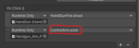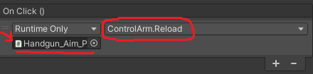 UI์ Fire ๋ฒํผ๊ณผ Reload ๋ฒํผ์ ๋๋ฅผ ๋ ๋นจ๊ฐ์ ์์ผ๋ก ๊ทธ๋ ค์ง ์ฝ๋๊ฐ ์คํํ์ฌ ๋ชจ์ ์ด ์ ์์ ์ผ๋ก ์ด๋ฃจ์ด์ง๋๋ก On Click() ํจ์์์ ์ฒ๋ฆฌํด์ฃผ์์ต๋๋ค.