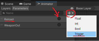 Reload(์ฌ์ฅ์ ) ๋ณ์๋ฅผ Trigger ํ์ ์ผ๋ก ๋ง๋ค์ด ํ๋ฒ ์คํ ํ ์ฐ๊ฒฐ๋ Transition์ ๋ฐ๋ผ ๋์ ์ ํ์ด ์ด๋ฃจ์ด์ง๋๋ก ๋ง๋ค์ด ์ค๋๋ค.